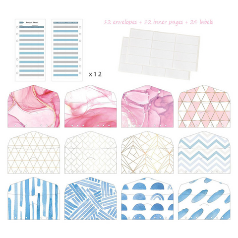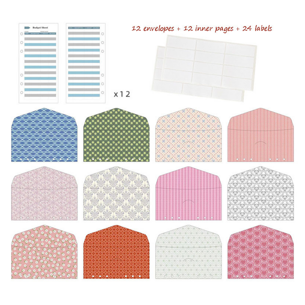 Included: 12 A6 Envelopes, 12 A6 Budget Sheets, and 24 Labels