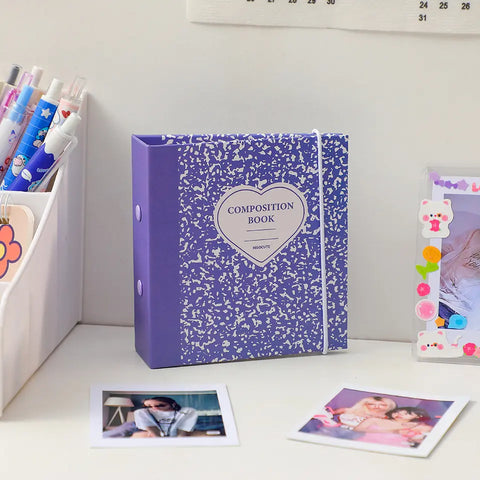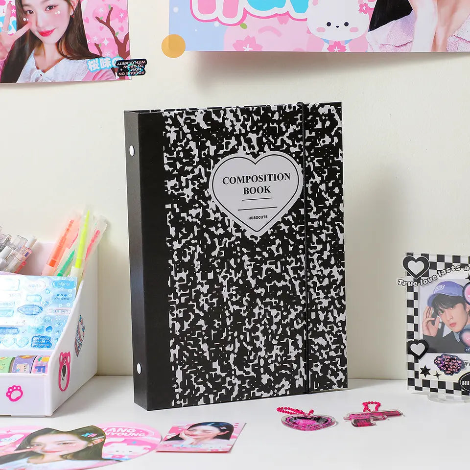 This Composition Notebook Binder is perfect for photocard collectors, with its A5 and A7 sizes, and various colors. It features a composition notebook design. Use this binder to keep your collection, important documents, or cash envelopes organized and secure.