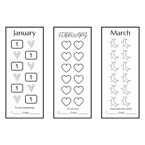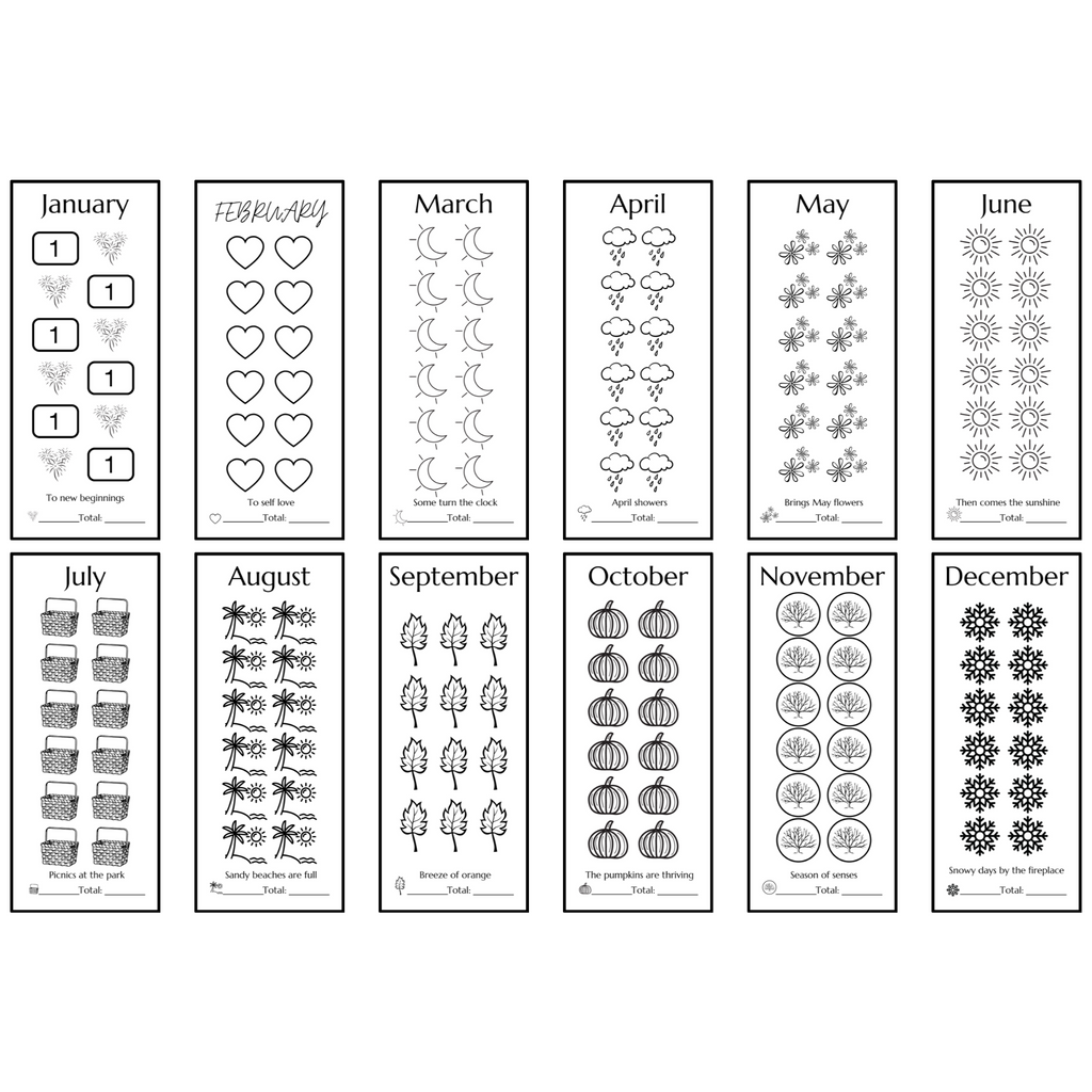 One savings challenge for each month. Laminated. Size: Approx. 2.5 x 6 inch.